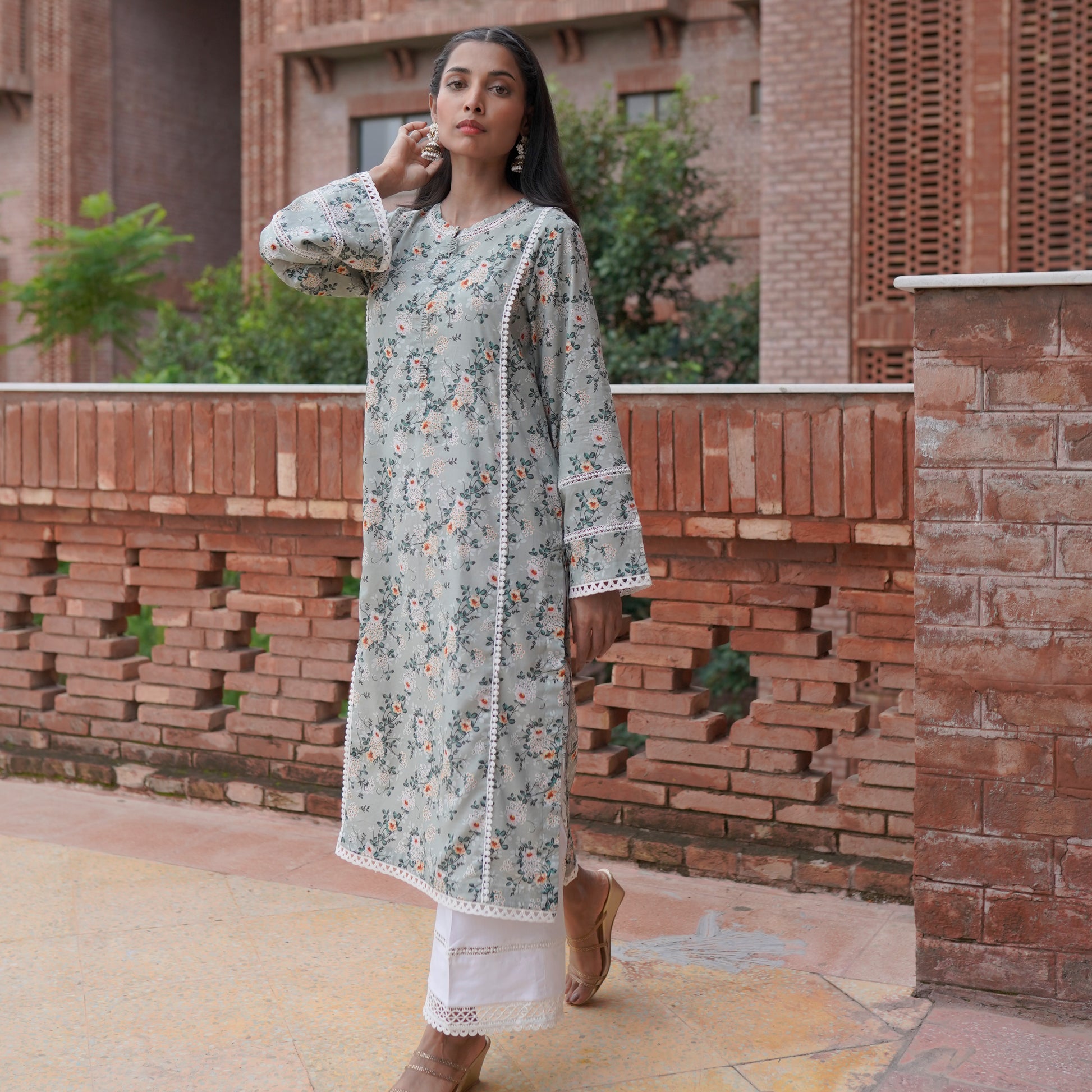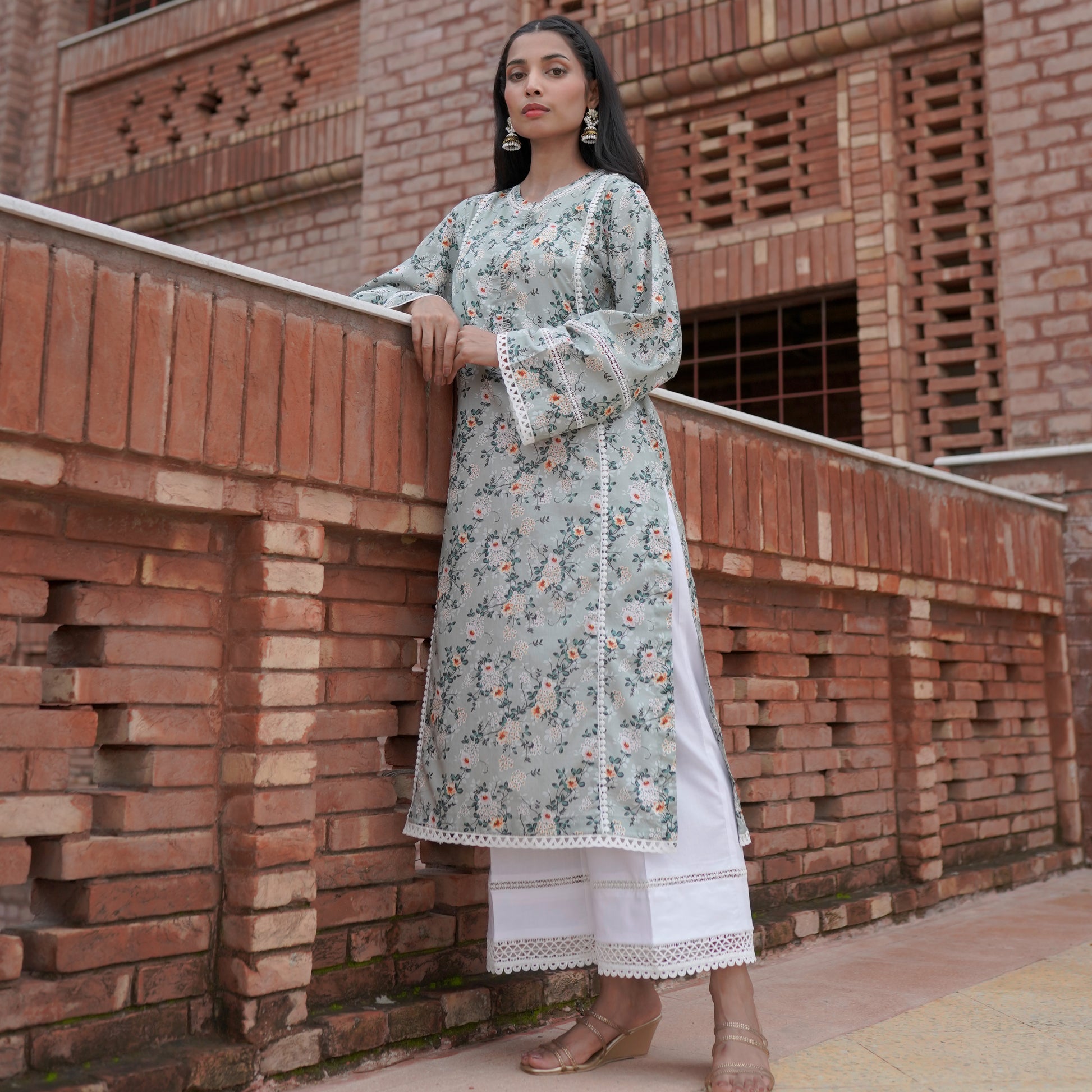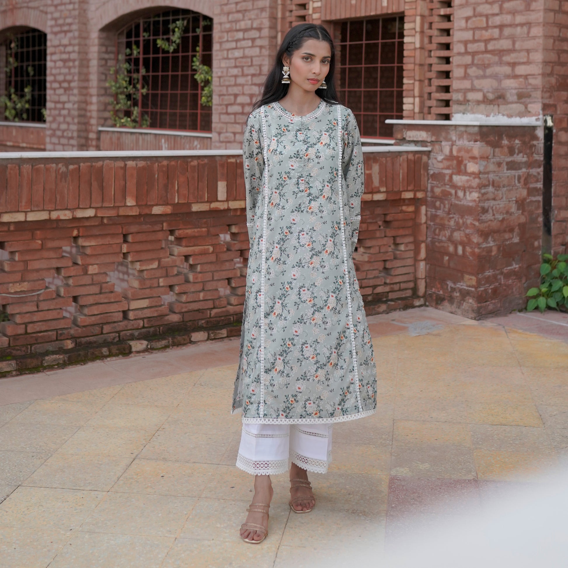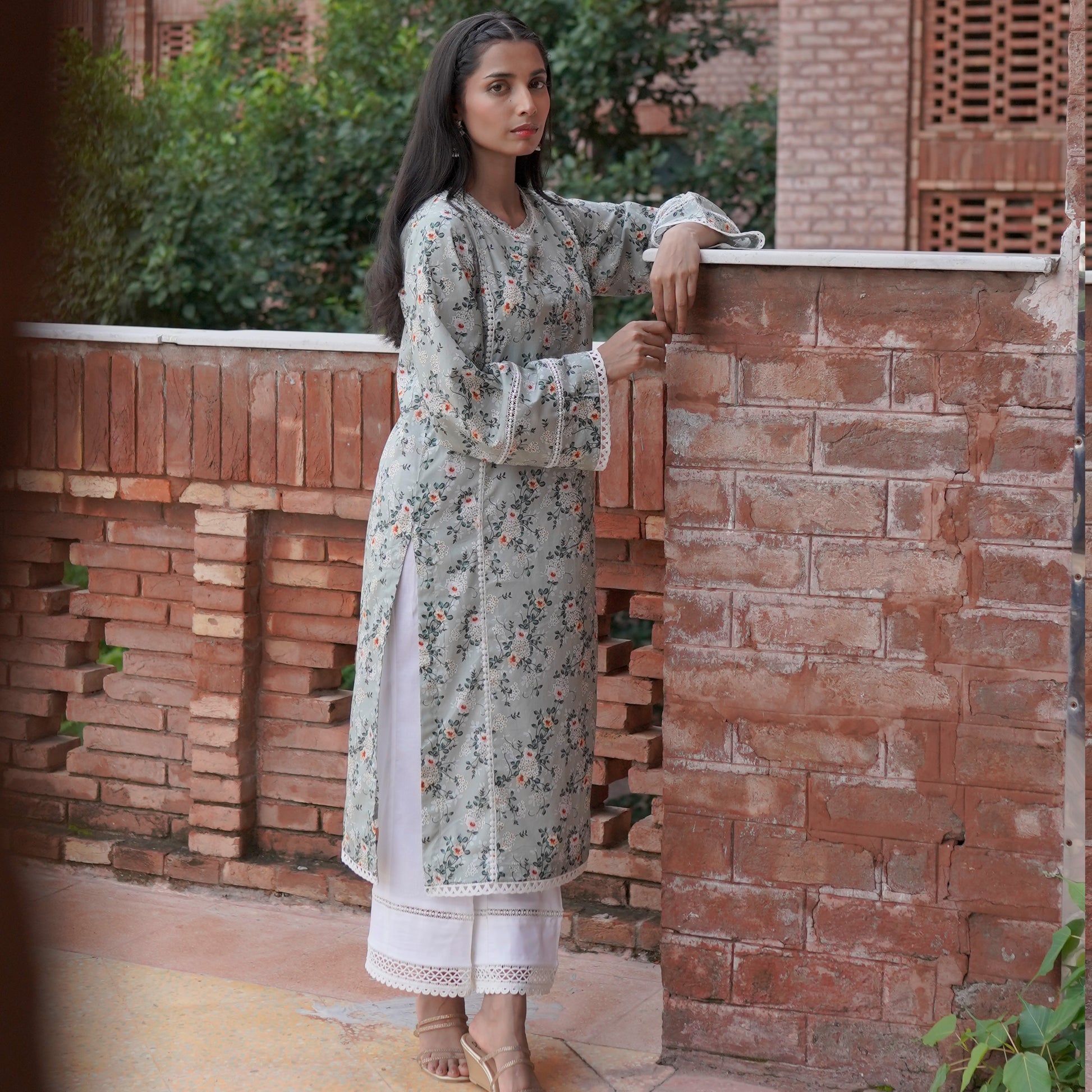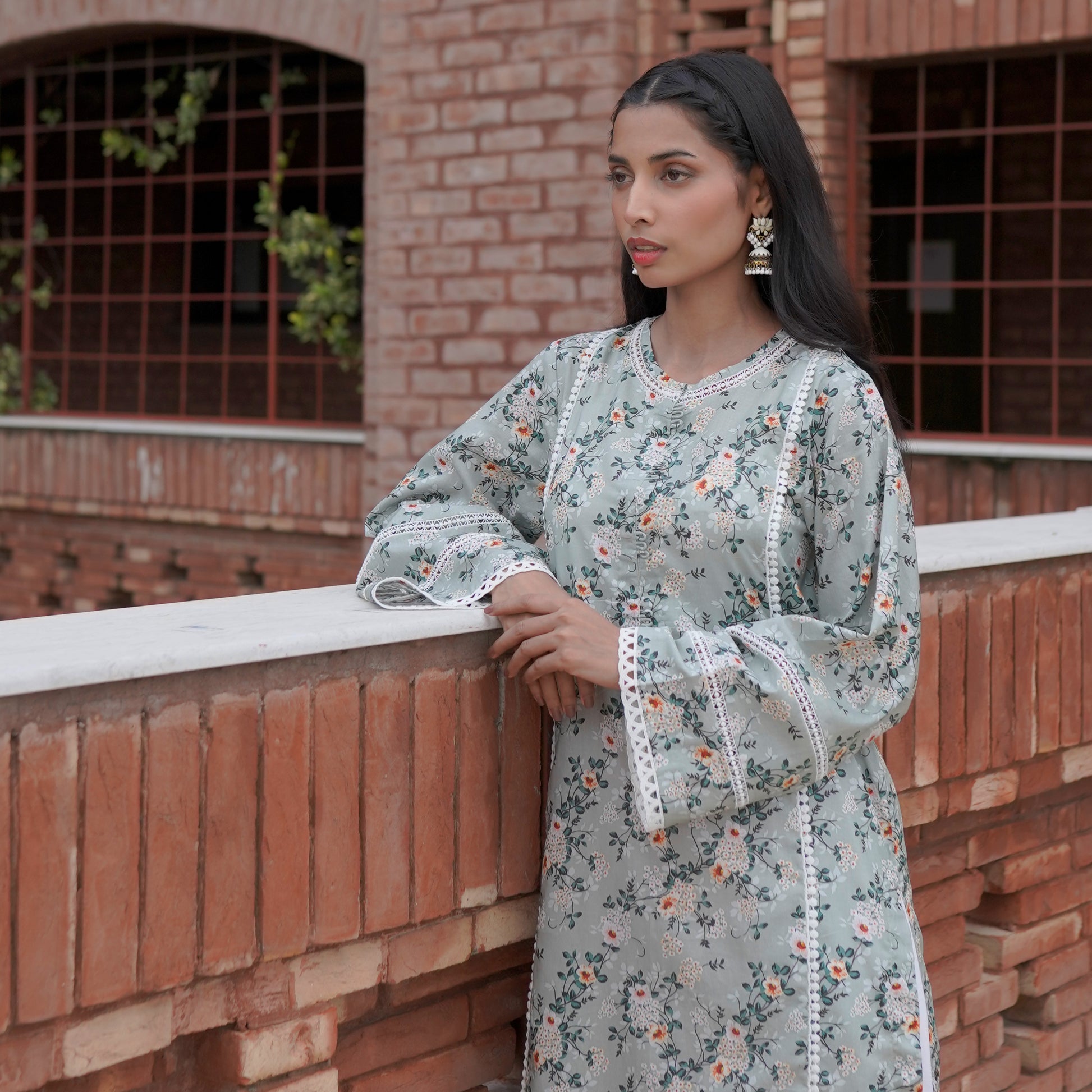"Unveil your elegance with سنبل 🌸—a graceful long shirt paired with pristine white trousers, adorned with delicate lace details. Its soft, sensual fabric and subtle print make it effortless to style, perfect for any occasion. Embrace the simplicity and sophistication of timeless fashion.